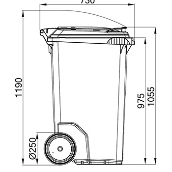 Låg/affaldsbeholder: Låget har to lågbolte og et robust håndtag Ø 27 mm