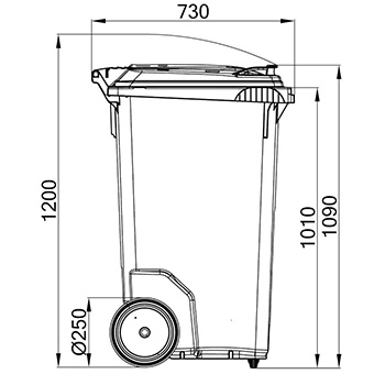 Hjul: to gummihjul Ø 250 mm som standard. Fabriksmontere fronthjul, integreret svingbart hjul med bremse Ø 125 mm.