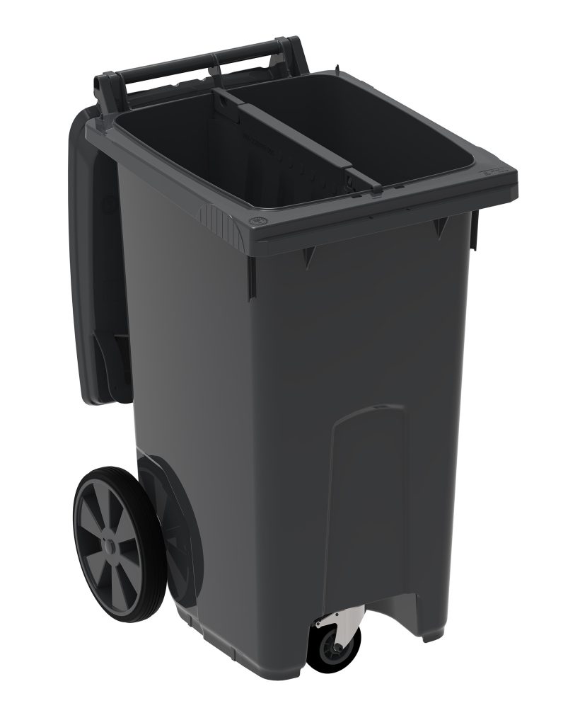 Altid forberedt til skillevæg i valgfri position 40/60, 50/50 60/40. Skillevægge placeres i styrespor i bunden af beholderen og fæstnes med to clips i beholderens øverste kant.