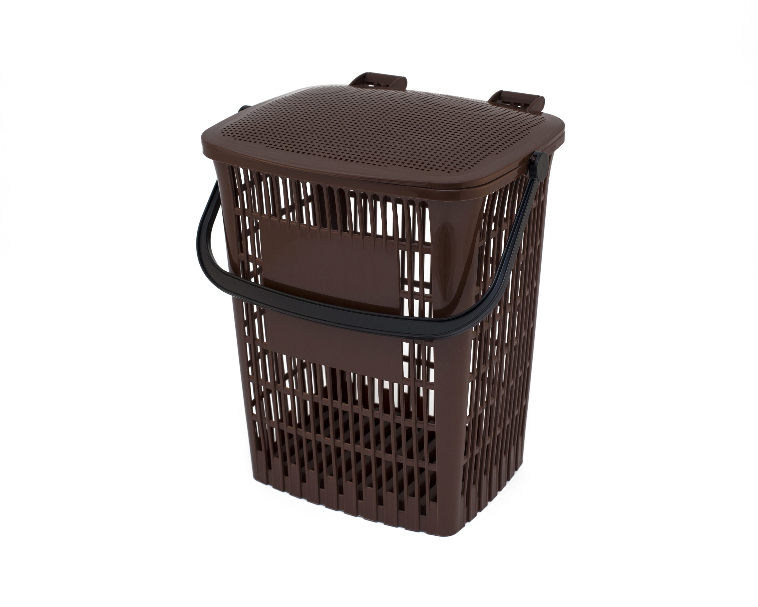 Ventileret beholder med ventileret hængslet låg der åbnes opad. Vælg mellem plasthåndtag med låsefunktion eller metalhåndtag