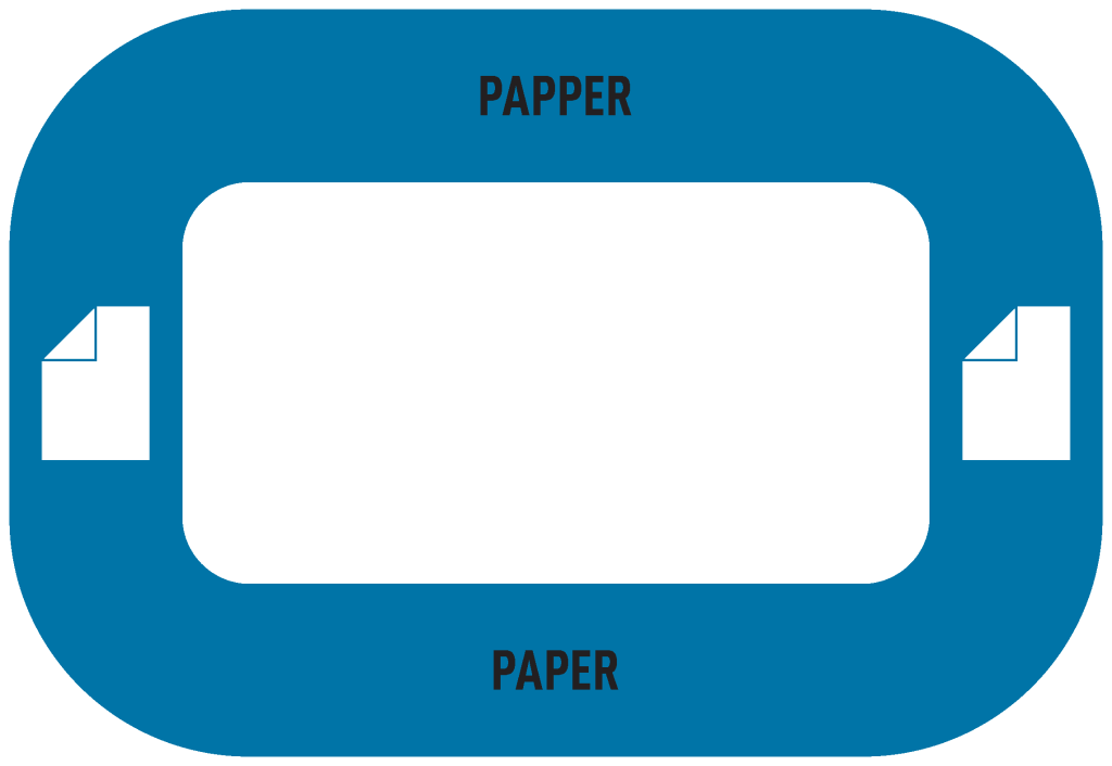 Tarra tekstillä ”Papper”, suunniteltu Royal C Eco -lajittelukalusteelle.