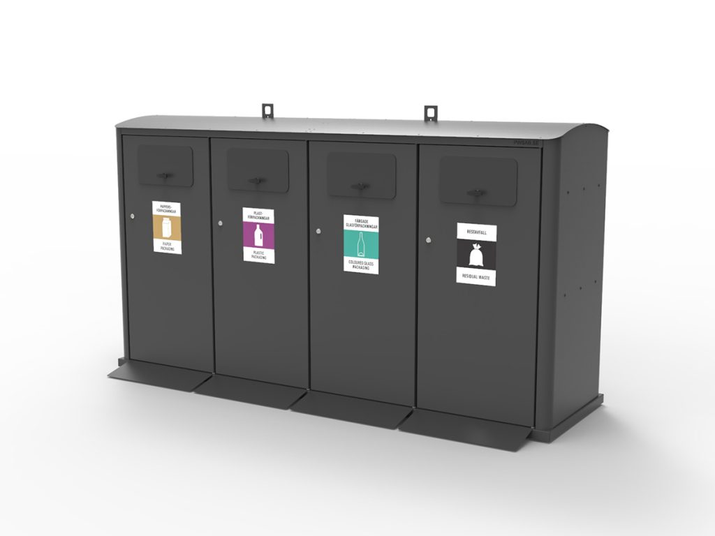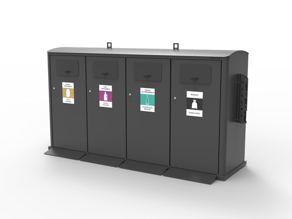 - Volym: passar 240 liter kärl eller säckhållare med 3- eller 4- inkast