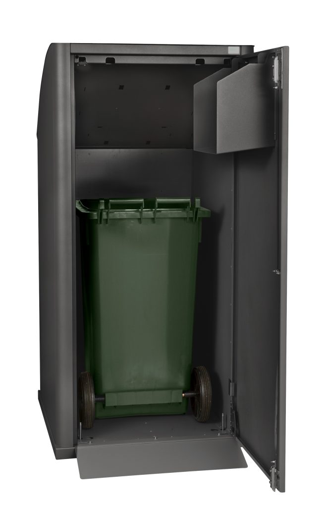 Volym: cirka 240 liter med plats för ett 140-, 190- eller 240-liters kärl