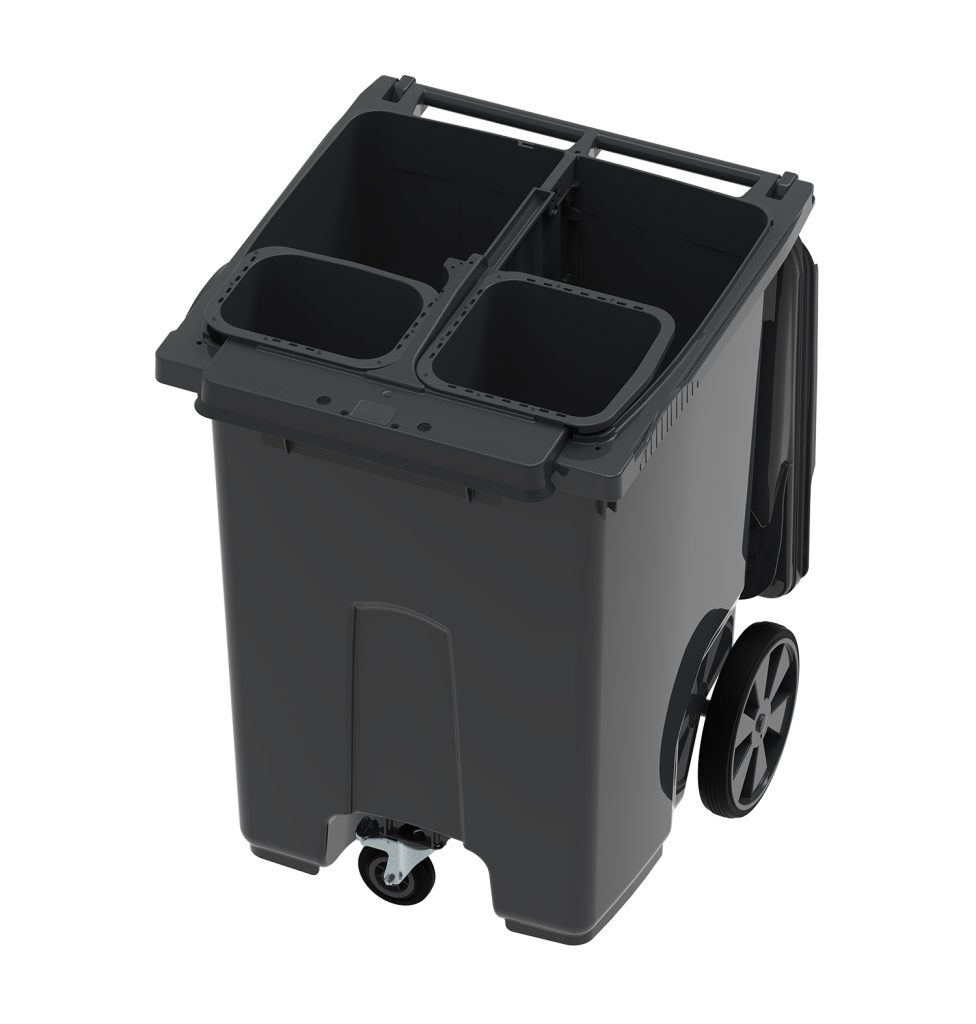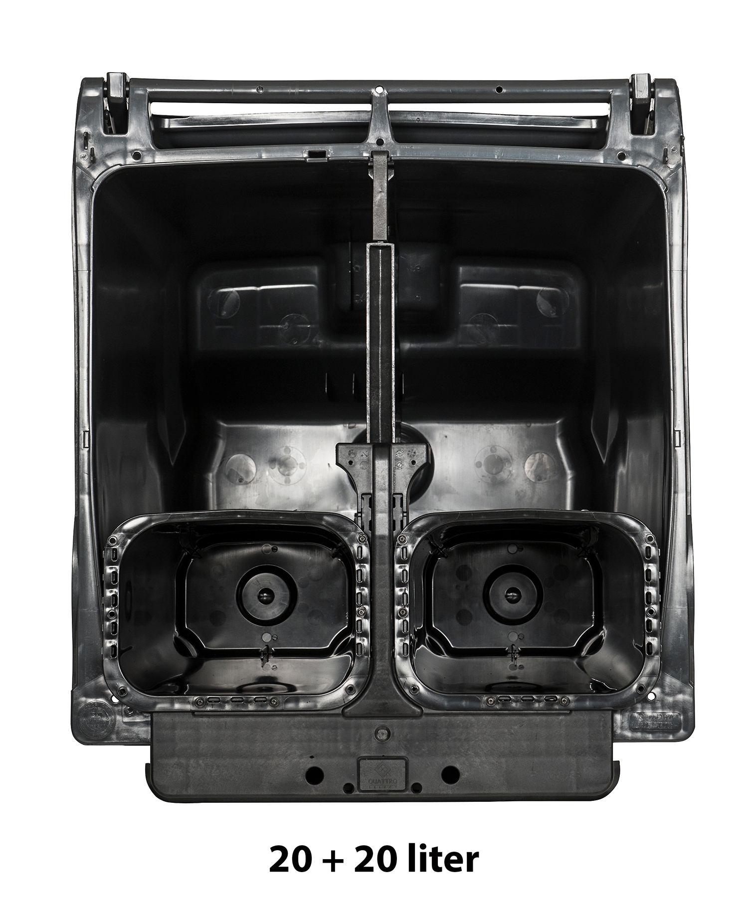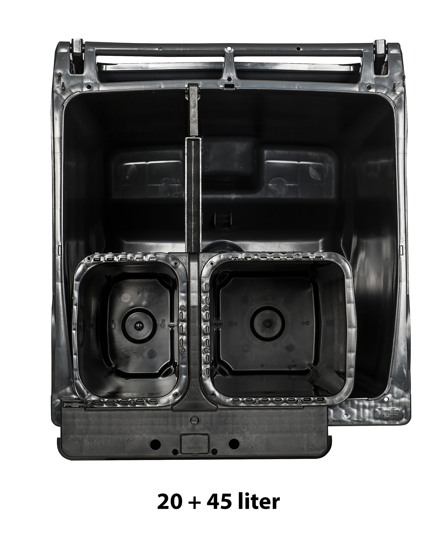 Quattro Select-systemet är ett flexibelt och genomtänkt avfallshanteringssystem med många valmöjligheter. Systemet består av två kärl, där varje kärl har en justerbar avdelare och två insatser. Avdelaren kan placeras i två olika lägen, vilket möjliggör volymfördelning på antingen 50/50 eller 40/60. Insatserna finns i fyra storlekar – 20, 30, 45 och 60 liter – vilket ger stor flexibilitet för olika typer av avfall.