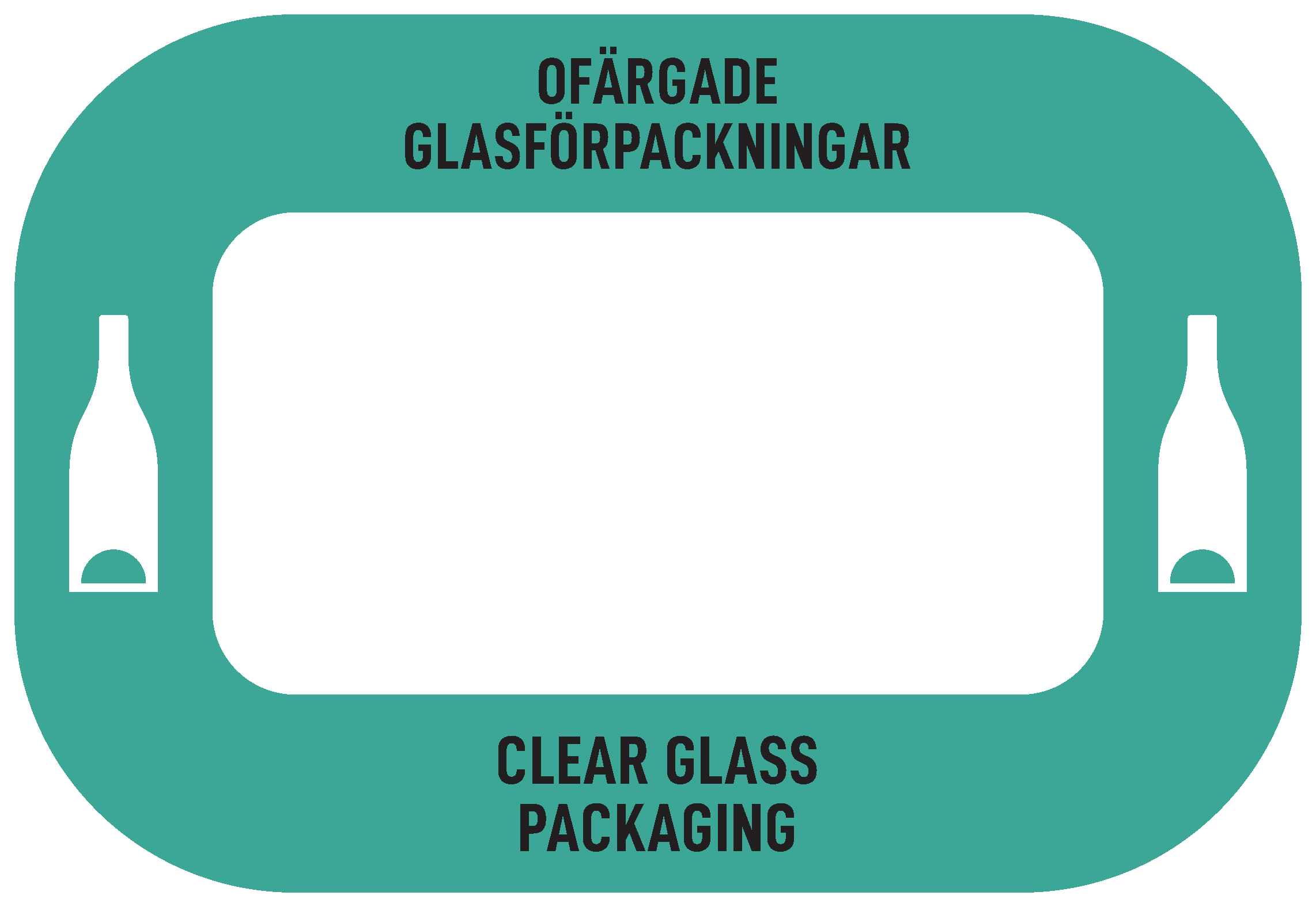 Dekal med texten ”Ofärgade glasförpackningar”, anpassad för källsorteringsmöbeln Royal C Eco.